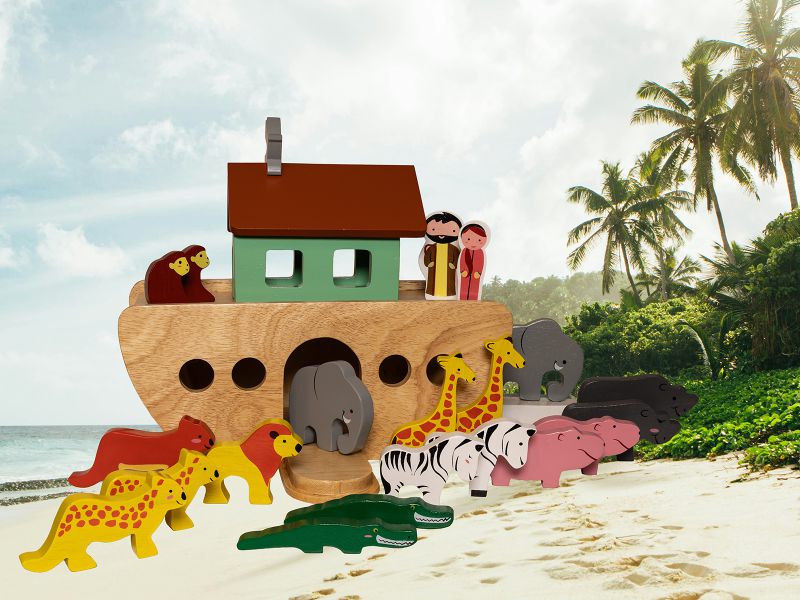 Alle an Bord! Mit diesem liebevoll gestalteten Spielset können Kinder die Geschichte von Noahs Arche nachspielen und jede Menge eigene Abenteuer erfinden.