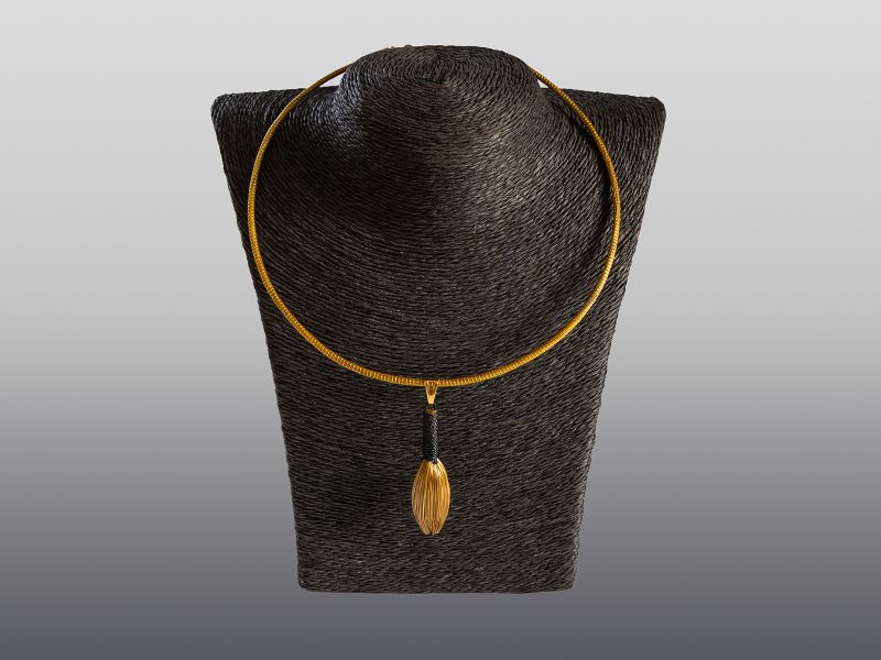 Das goldene Gras aus der brasilianischen Region Jalapão ist die Basis für diesen eleganten veganen Schmuck. Die Kunsthandwerker:innen gehören teils noch den Xerente-Indianern an, die seit Jahrhunderten in diesem Gebiet leben.