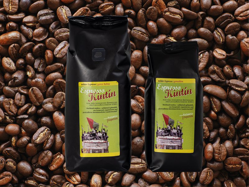 Der Rohkaffee wird ohne die Verwendung von Pestiziden in harter Arbeit von indigenen Kleinbäuer*innen angebaut, die Teil der indigenen Bewegung des Cauca/Kolumbien (CRIC) sind.