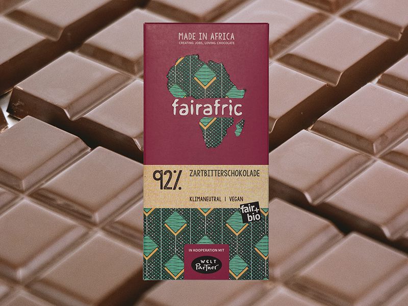 fairafric ist die erste superfaire Bio-Schokolade, die komplett in Ghana produziert wird. Mit jeder gekauften Tafel ermöglichst Du mehr Wohlstand für die Menschen am Anfang der Lieferkette, viermal mehr Einkommen im Ursprungsland der Kakaobohnen, gut bezahlte mittelständische Jobs in Ghana, die höchsten Kakaoprämien Westafrikas, sowie echten Systemwandel statt nur Entwicklungshilfe.
