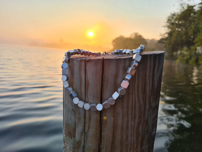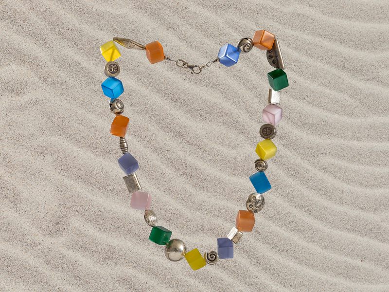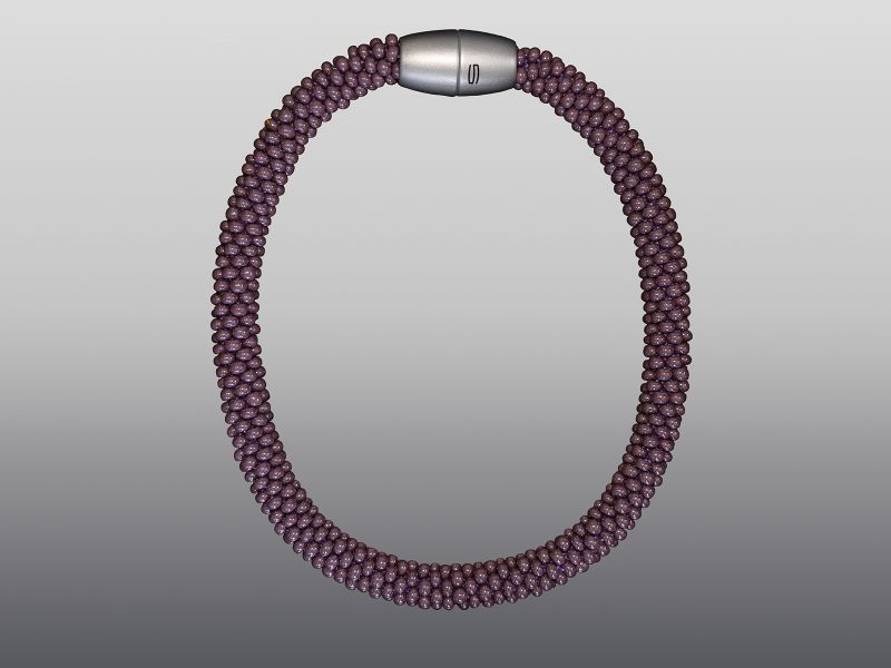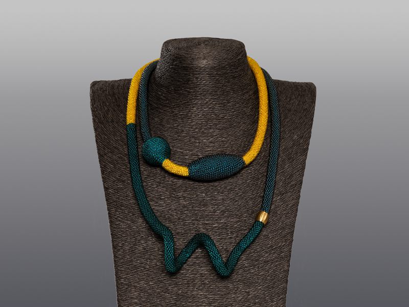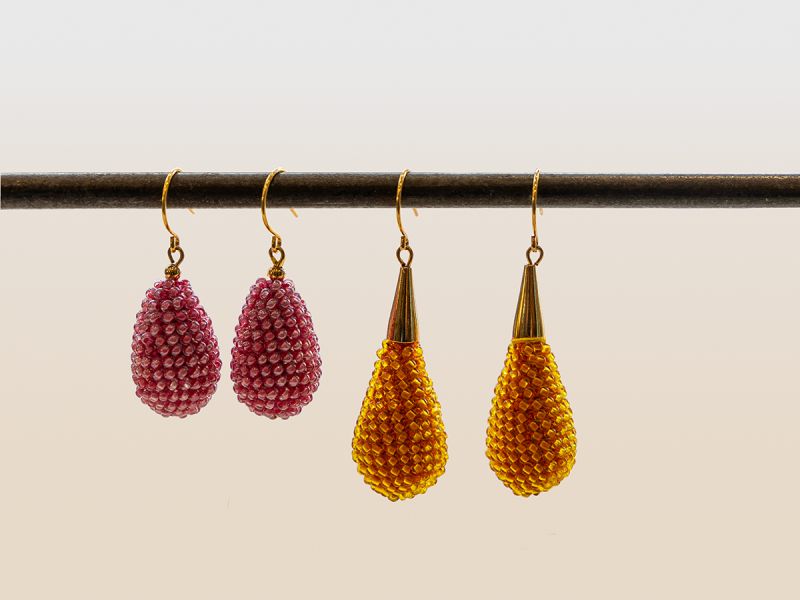 Seit dem 19. Jahrhundert werden filigranste Glasperlen auf feines Garn gefädelt und zu Schmuck verhäkelt und verknüpft. Zeitgenössisch umgesetzt entsteht so vielseitiger, moderner Schmuck in klaren Formen und starken Farben.